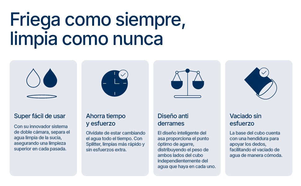 Limpieza con agua limpia, no deja residuos en ning¨²n superficie.