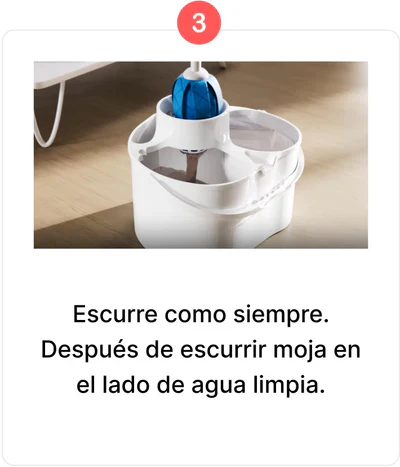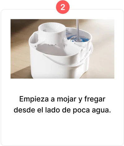Limpieza con agua, ideal para superficies delicadas.